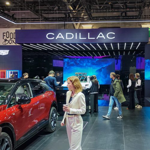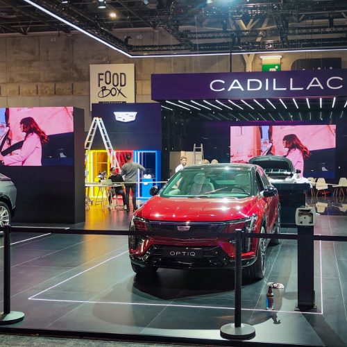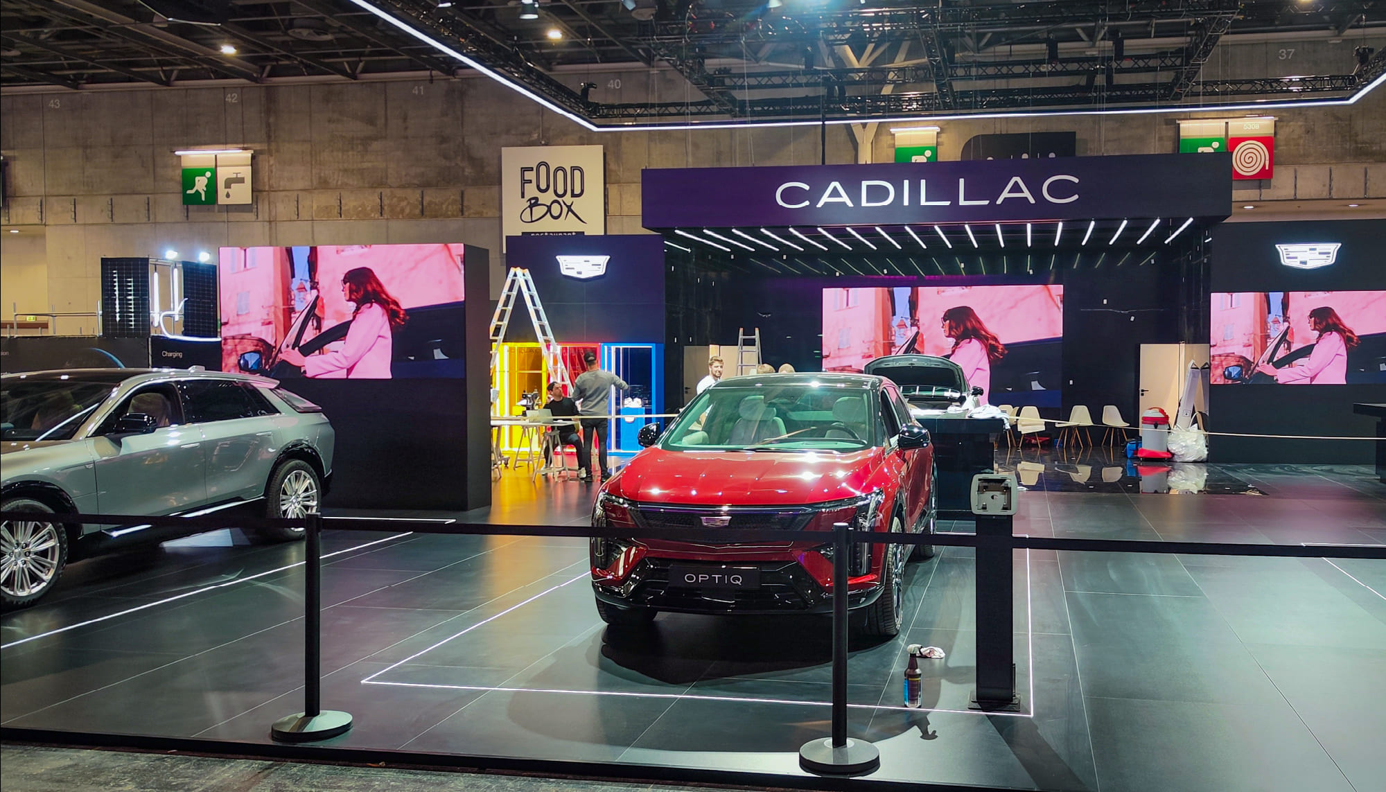 We created a functional stand with the essential architectural and technical elements needed to support the press, sales and interaction with visitors during the launch of the Cadillac OPTIQ #ARCTIQ Winter Edition.