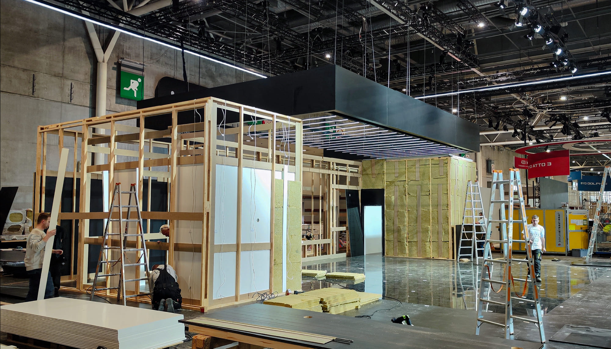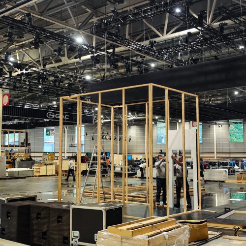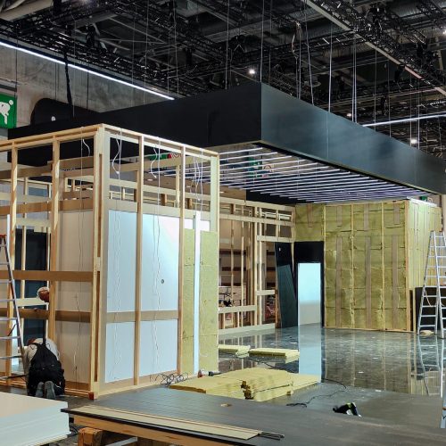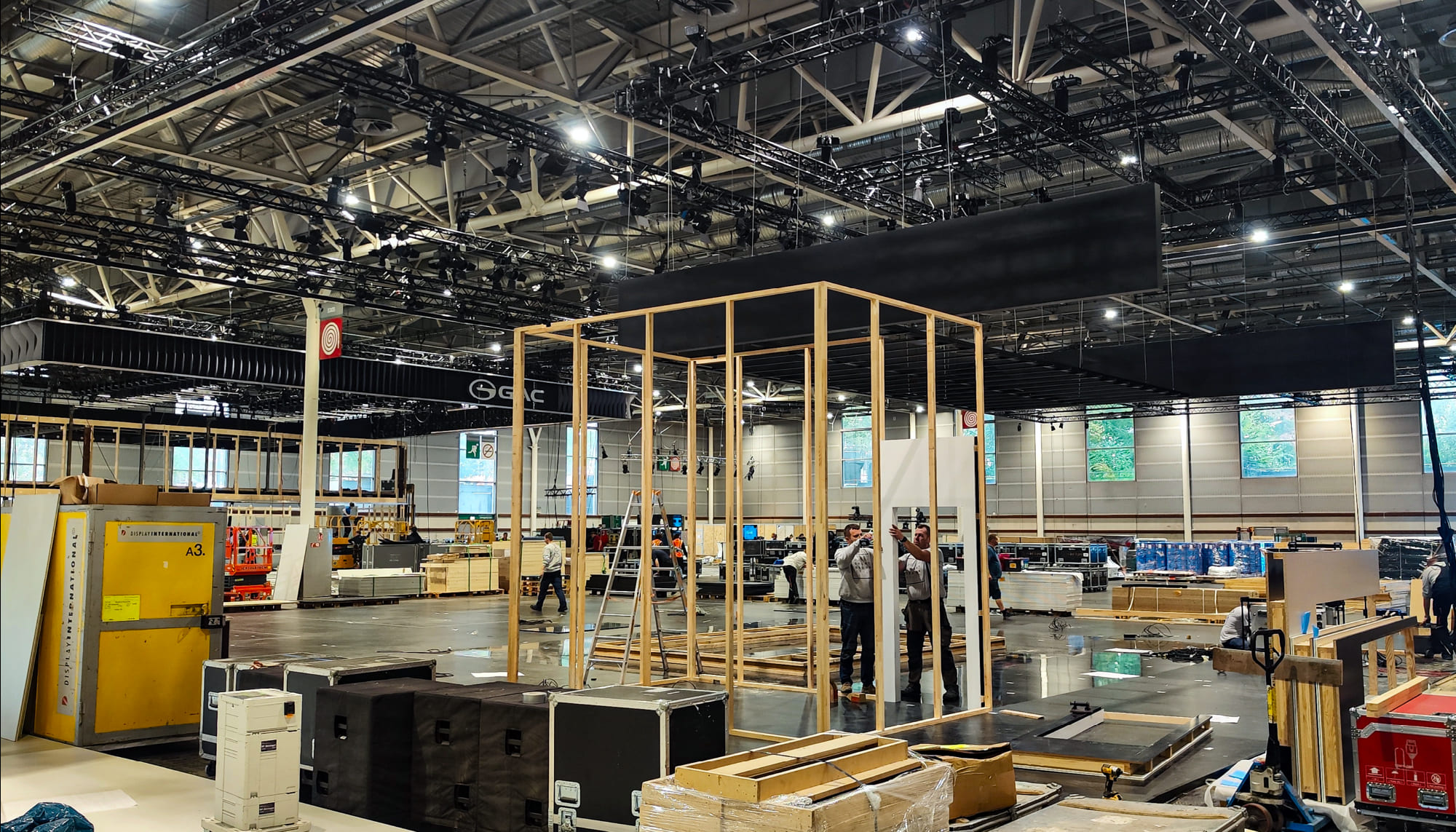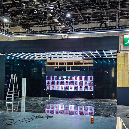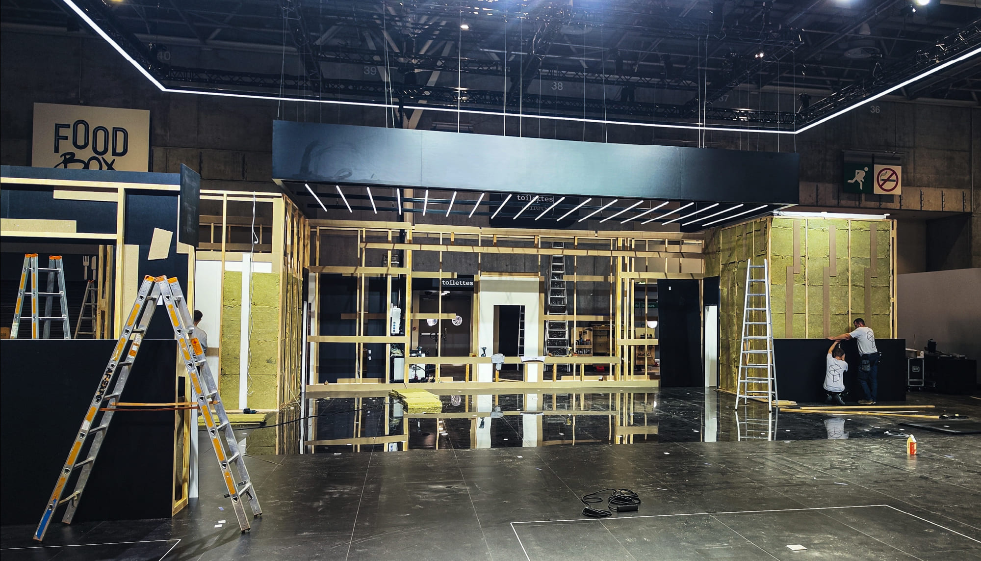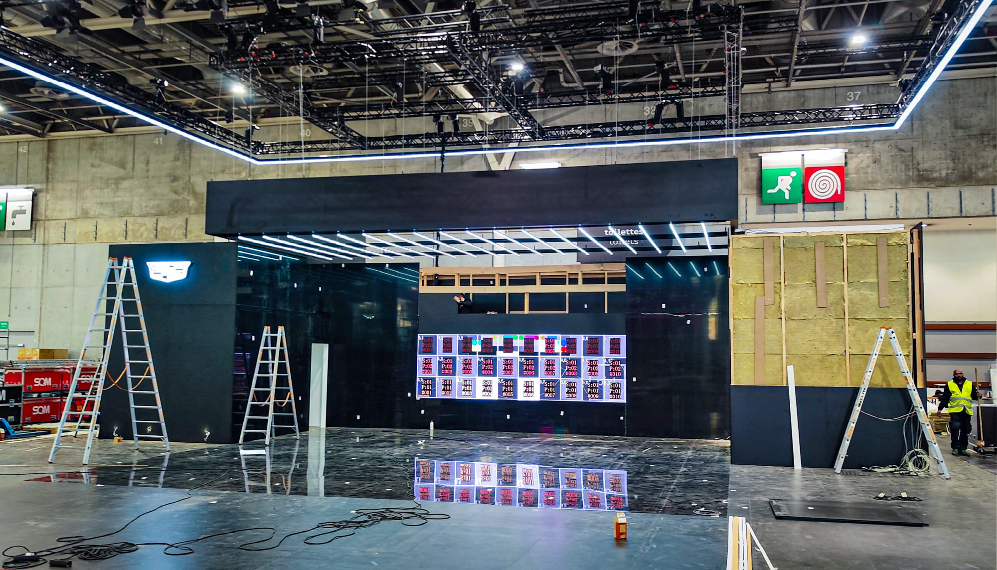 Following the approved plans, we constructed the essential components of the stand, including the welcome desk, LED wall, configuration area, meeting rooms, interview area and accessibility features such as the wheelchair ramp, ensuring uniform finishes and reliable technical integration.