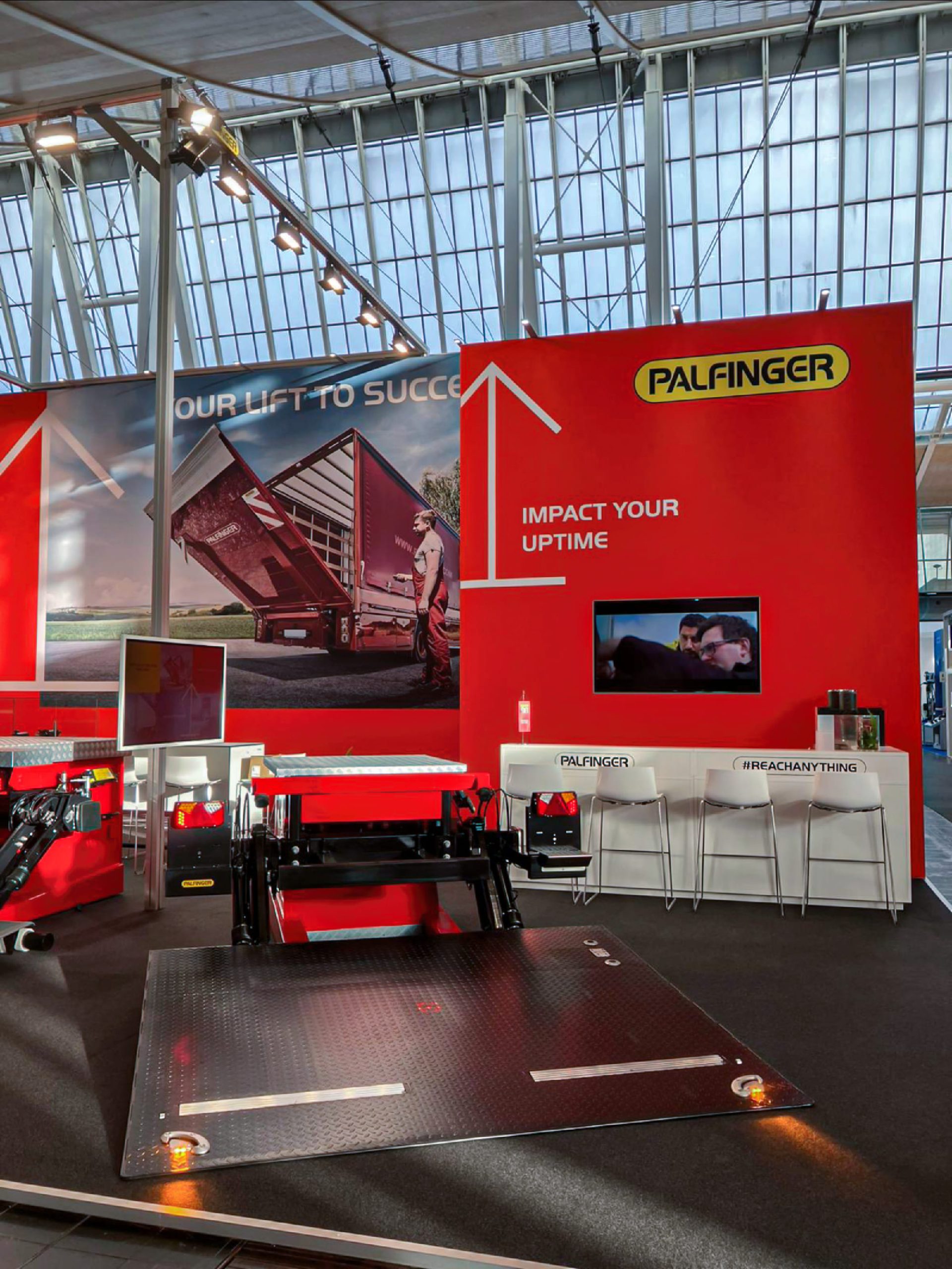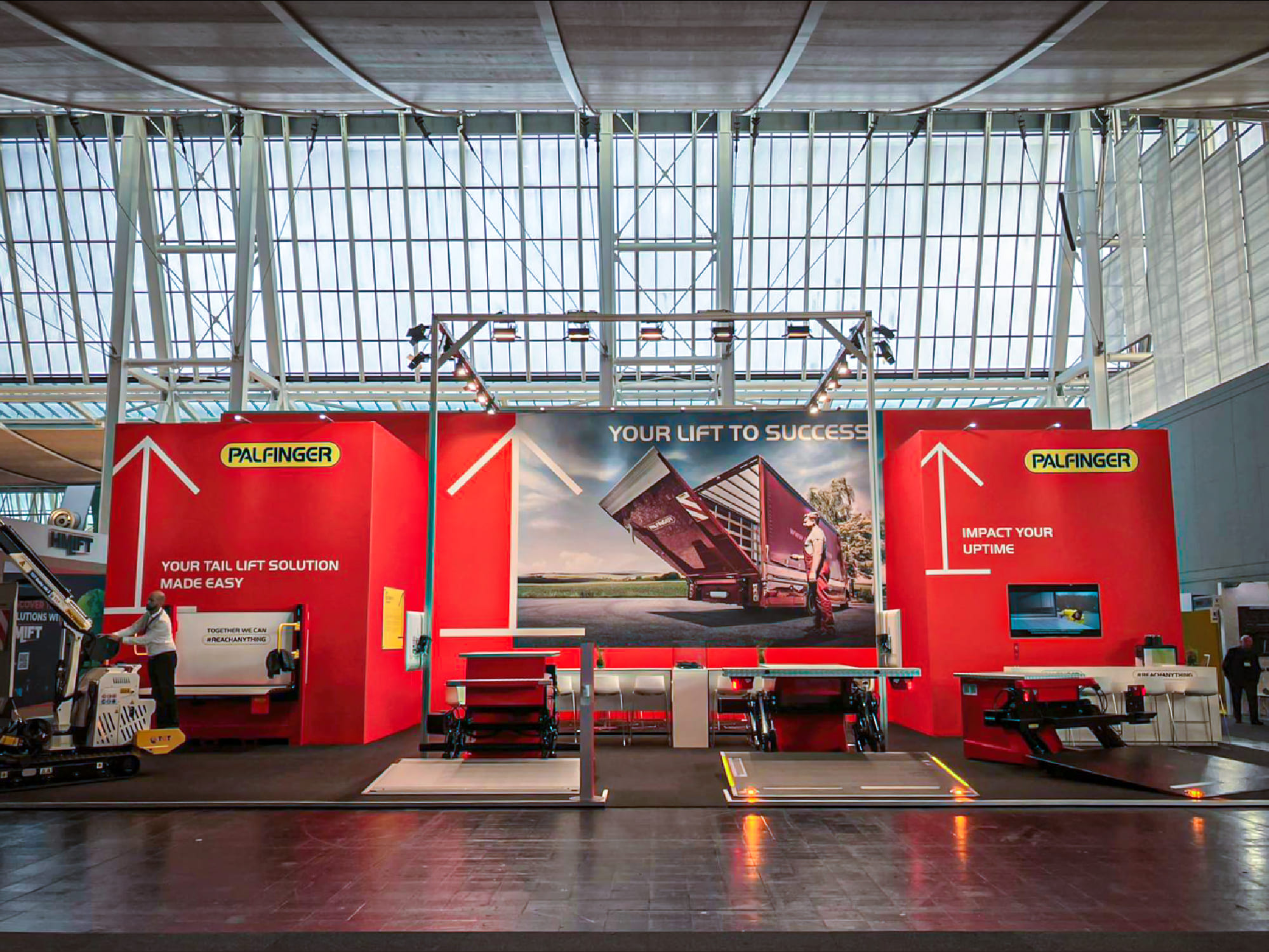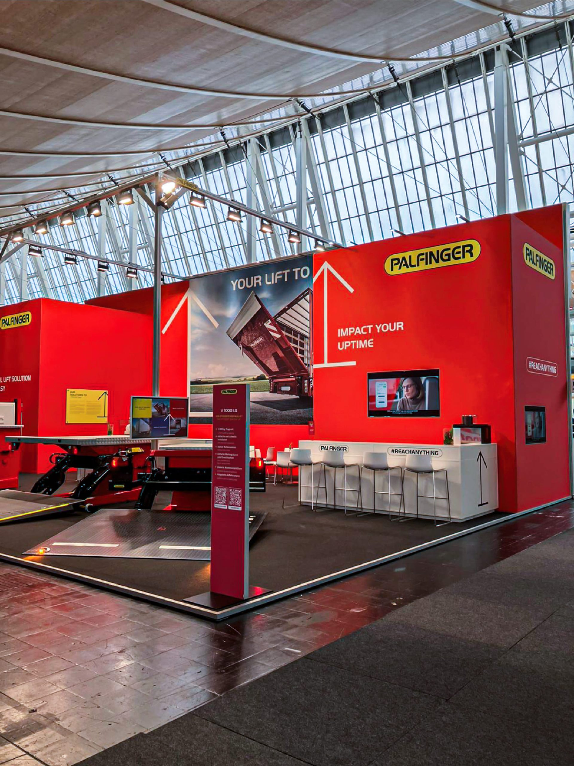 The objective was to support Palfinger in presenting a concise exhibition that reflected the company’s long-standing engineering expertise and close relationships with customers and partners.