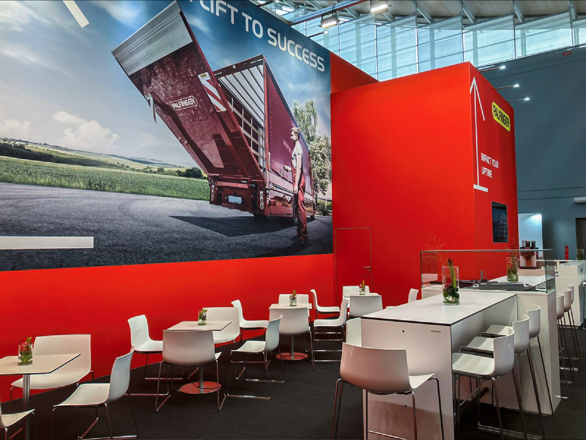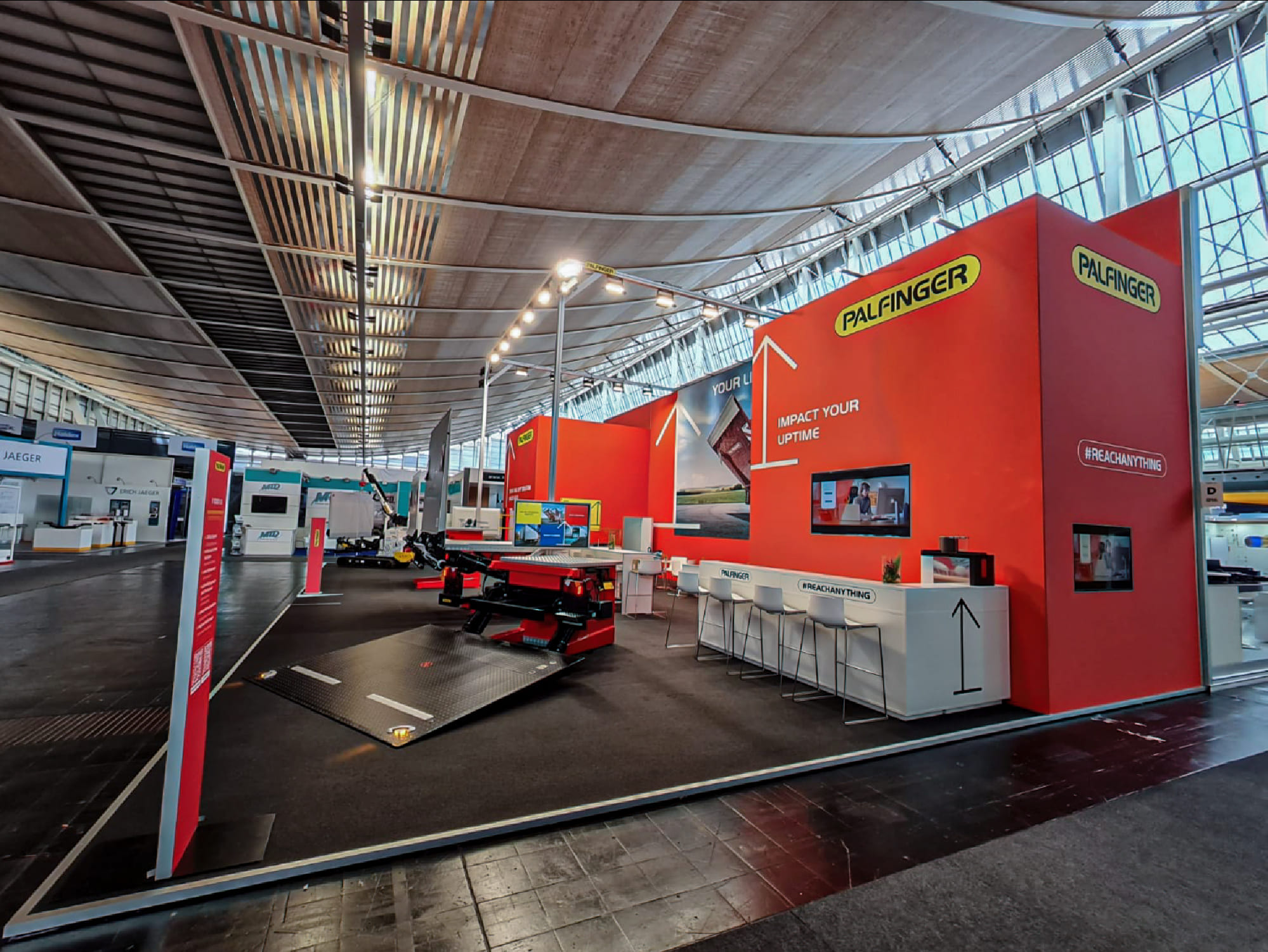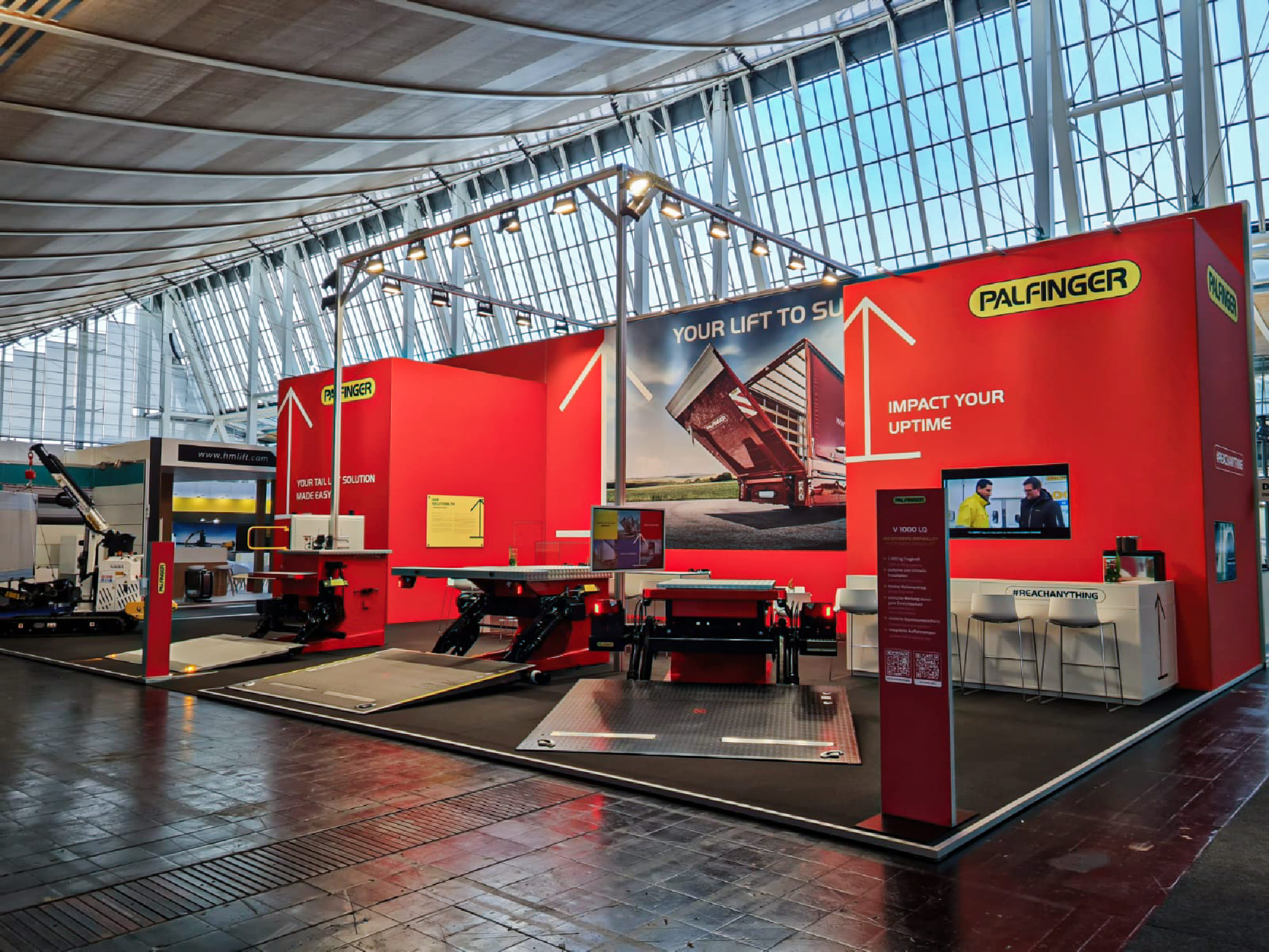 The objective was to support Palfinger in presenting a concise exhibition that reflected the company’s long-standing engineering expertise and close relationships with customers and partners.