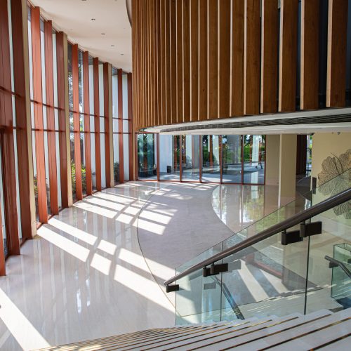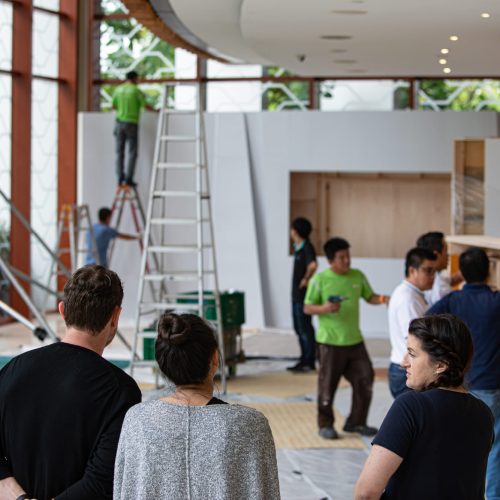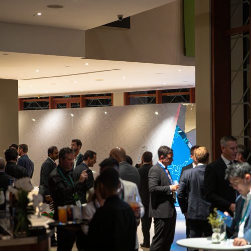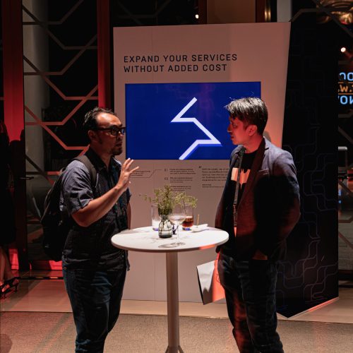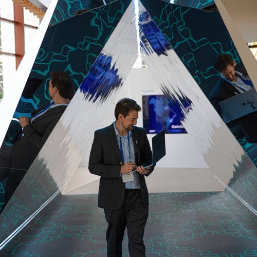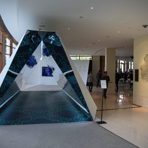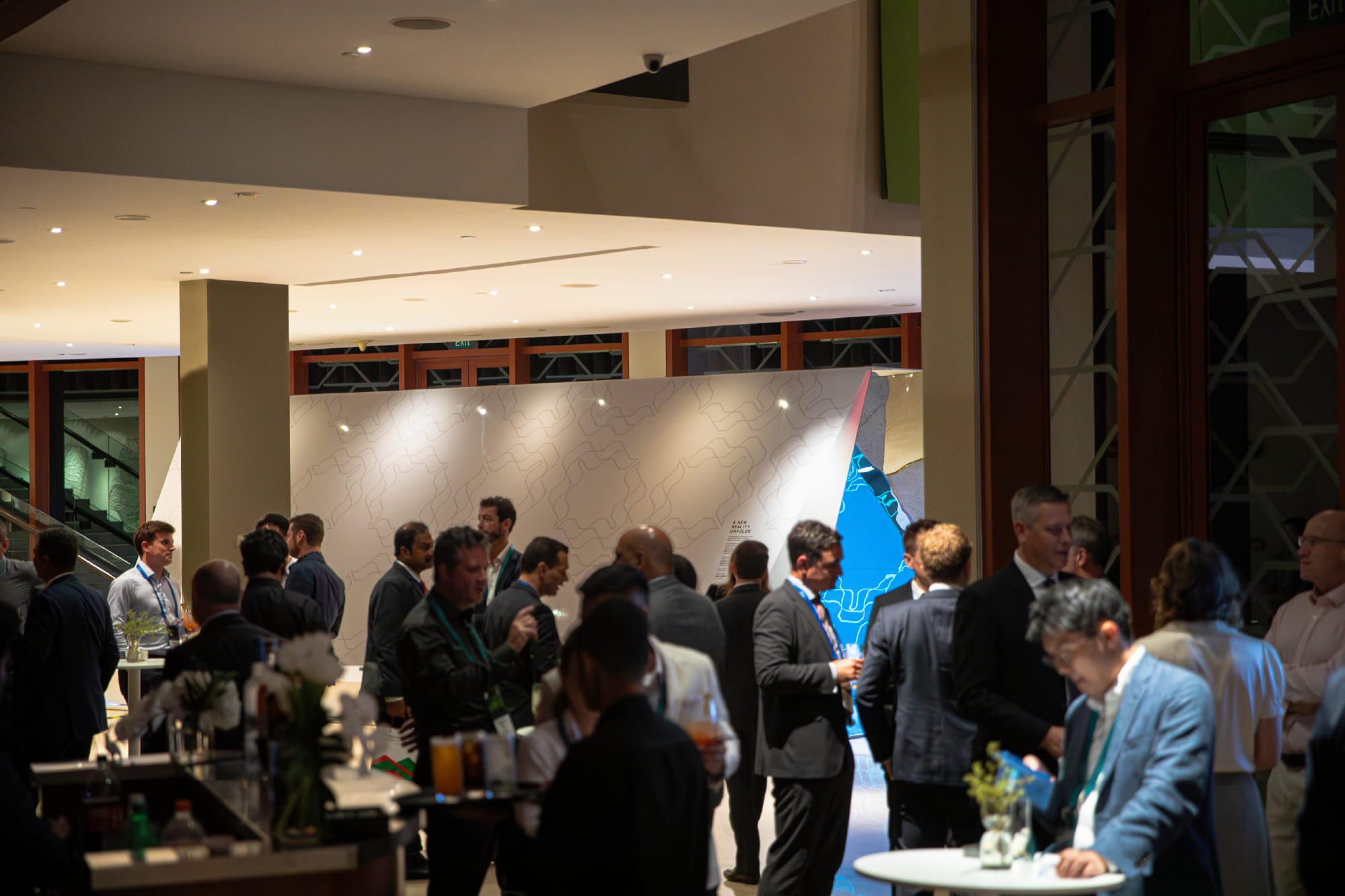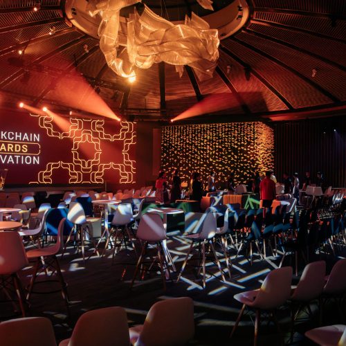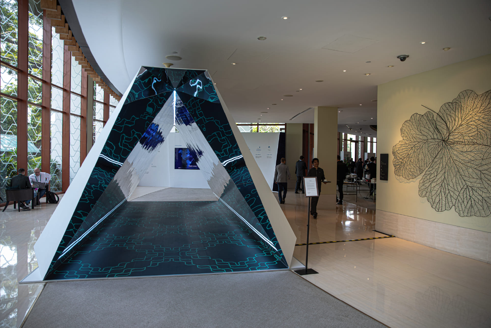To bring this to life, the event design fused architectural precision with creative storytelling. Guests entered through a lush living wall and anamorphic installations spelling out the words “HELLO” and “SWELL,” leading to a kaleidoscopic passageway that revealed the main space. Interactive zones invited exploration – from infographic walls visualizing the RippleNet network to demo kiosks and partner showcases.