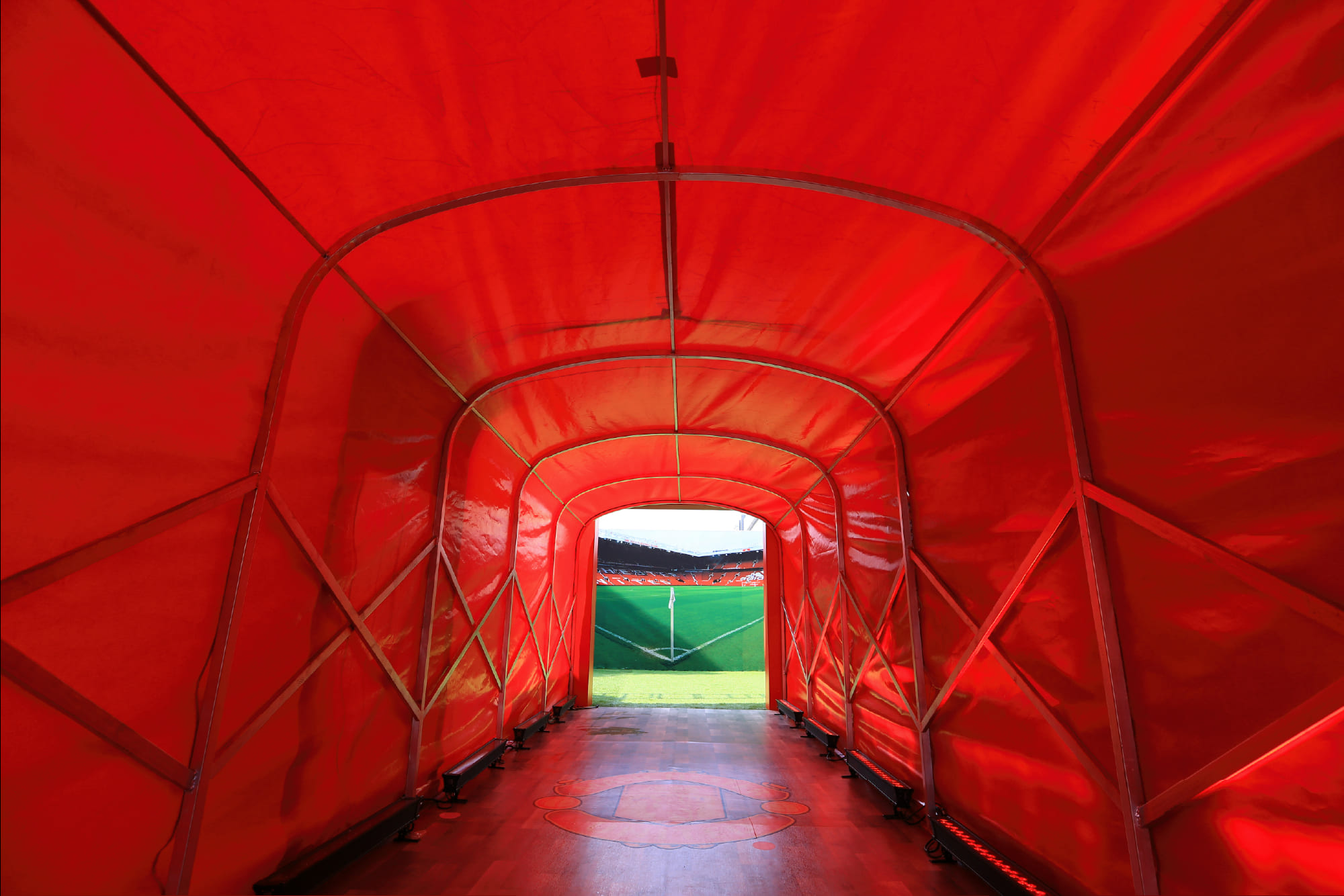 The activation invited visitors to walk through a reconstruction of the iconic red tunnel and step onto the real turf to take photos. Inside, fans discovered interactive zones that included augmented reality and virtual reality experiences, a replica of the locker room, and an area dedicated to skill challenges. At the center was a 360° projection dome that accommodated 35 fans per session, immersing them in cinematic sequences from match day, from booking an Uber to entering the stadium.